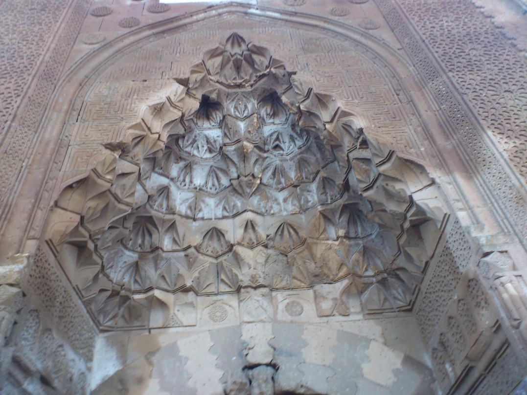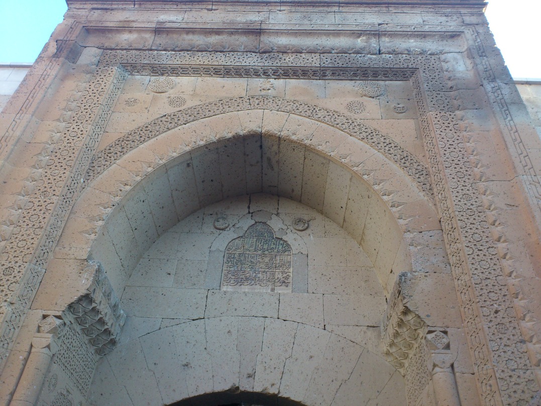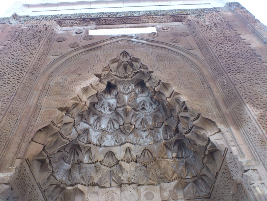 Ağzıkarahan kervansarayının iç kapısından süslemelri gösteren bir görüntü